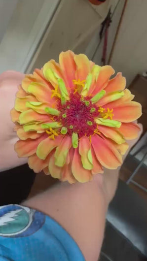 A full summer of 3" blooms ranging from deep apricot to mauve, to rose all with ripples of electric green. Easy to grow for such a stunner, blooming summer to frost on plants around 3' tall and 12" wide. I was trying to make it through this description without using the word eye-catching, but I can't. It's just the right word. Garden and cut flower goodness for a long season until the frost.